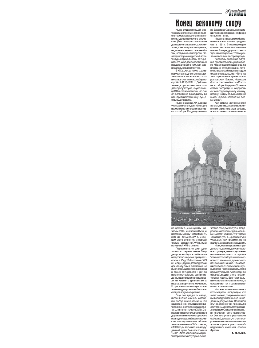 Pdf Melnik A G Konec Vekovomu Sporu Rostovskaya Starina Prilozhenie K Gazete Rostovskij Vestnik 2008 28 Noyabrya Vyp 130 Aleksandr Melnik Academia Edu