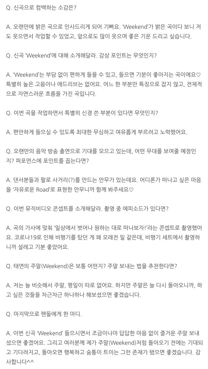 화수은화 على تويتر 태연 신곡 Weekend 일문일답