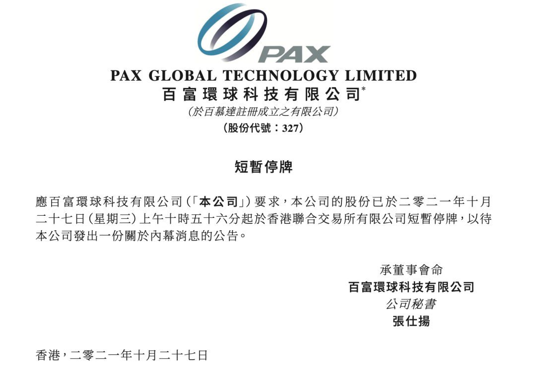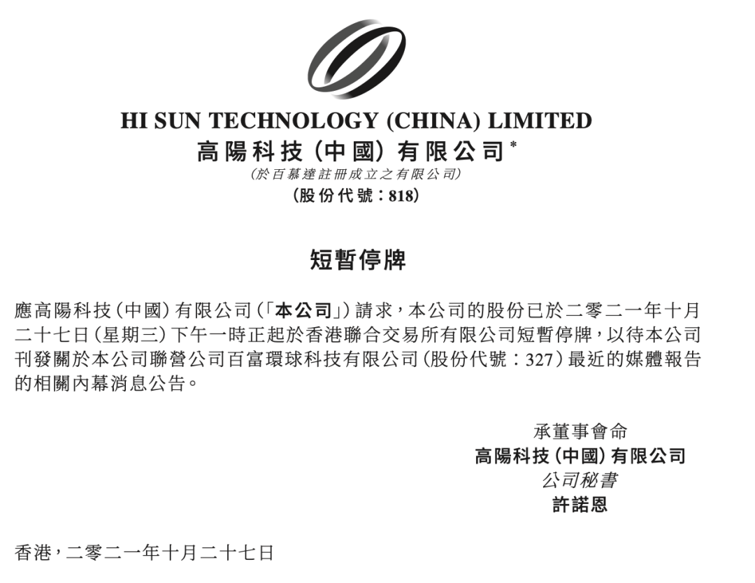 高陽科技00818hk下午1時起停牌以待刊發關於公司聯營公司百富環球00327hk最近的媒體報告的相關內幕消息公告 高陽科技停牌前報105元跌186. 電子支付服務商百富環球 00327 被指捲入美國聯邦調查局fbi和國土安全部調查今早股價急跌逾4成後停牌 百富環球暴跌連累持股33百富環球的高陽科技 00818 同樣大跌高陽科技今早股價跌19於中午宣布停牌 高陽科技停牌前報105元成交1800萬元最新市值2916億元. 信報財經新聞百富環球00327急插433後中途停牌報54元成交額163億元 美國聯邦調查局及國土安全部當地時間昨日搜查百富環球於美國佛羅里達州的辨公室 美國調查記者Brian Krebs在其網站Krebs On Security引述消息指百富環球系統涉嫌用作針對美國及歐盟組織的網絡攻擊 母.